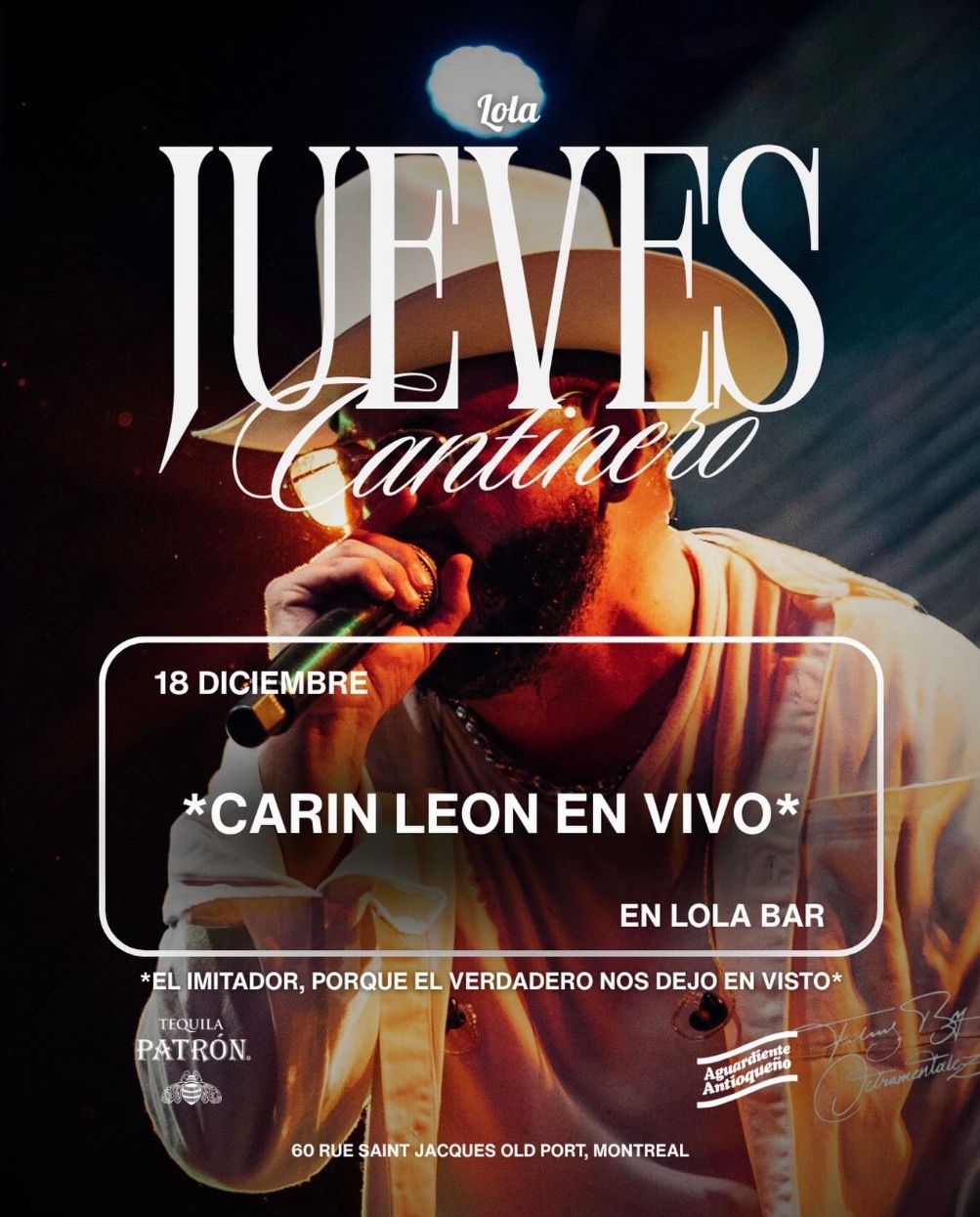 🎤 4. Jueves Cantinero: Carin León (el imitador) – 18 de diciembre